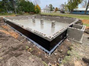 The new foundation at the build site in Oden.